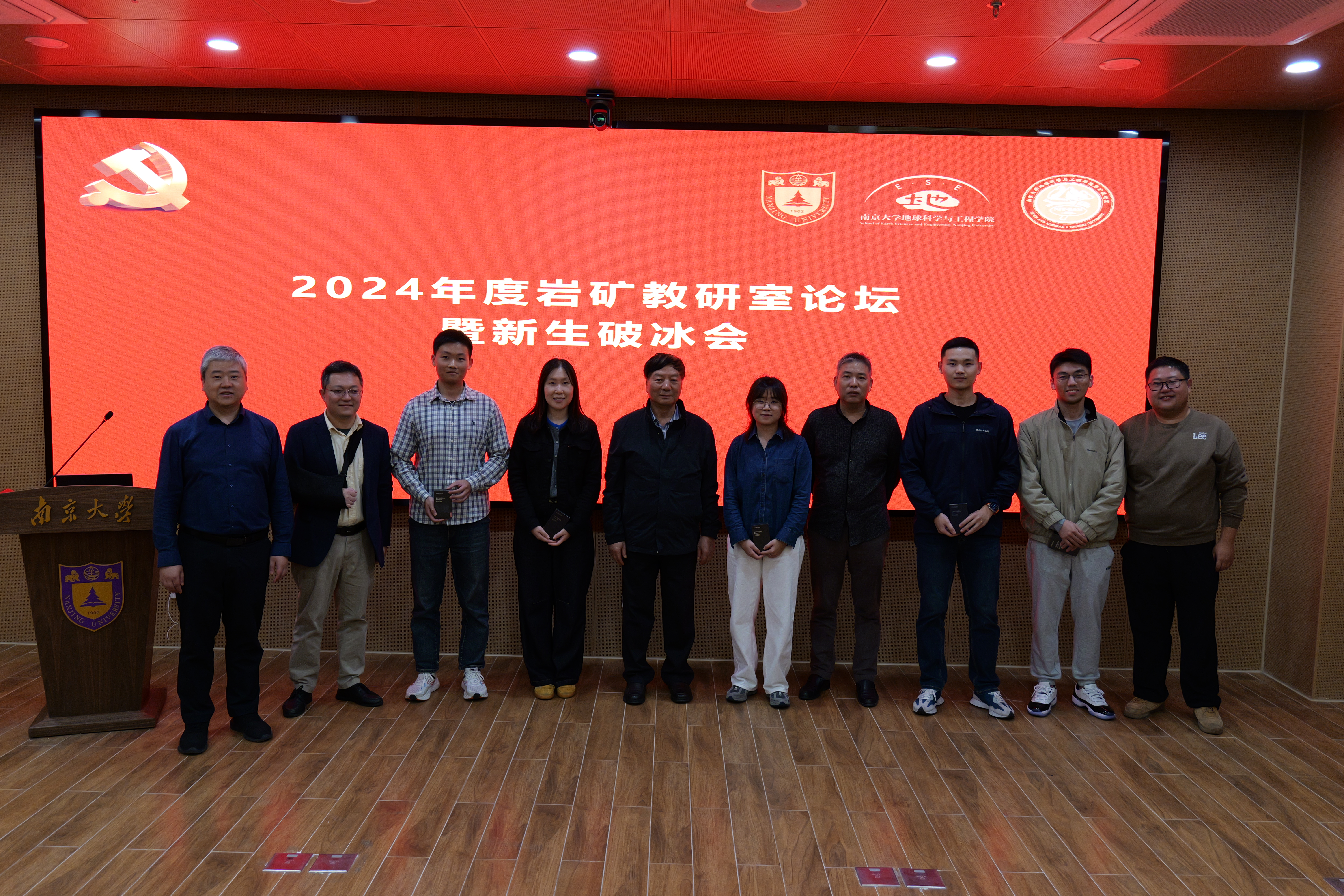 2024年11月16日下午,在南京大学地科院研究生培养办公室和研究生工作办公室的支持下,由岩矿教研室和岩矿教工支部共同主办的“2024年岩矿教研室新生破冰会暨岩矿论坛”在朱共山楼d26会议室隆重举行。本次活动旨在为同学们提供一个展示自我、交流学术的平台,同时也是一次和各位老师进行深入学术探讨的宝贵机会。岩矿教研室的师生们齐聚一堂,共同参与了这场一年一度的学术盛会。