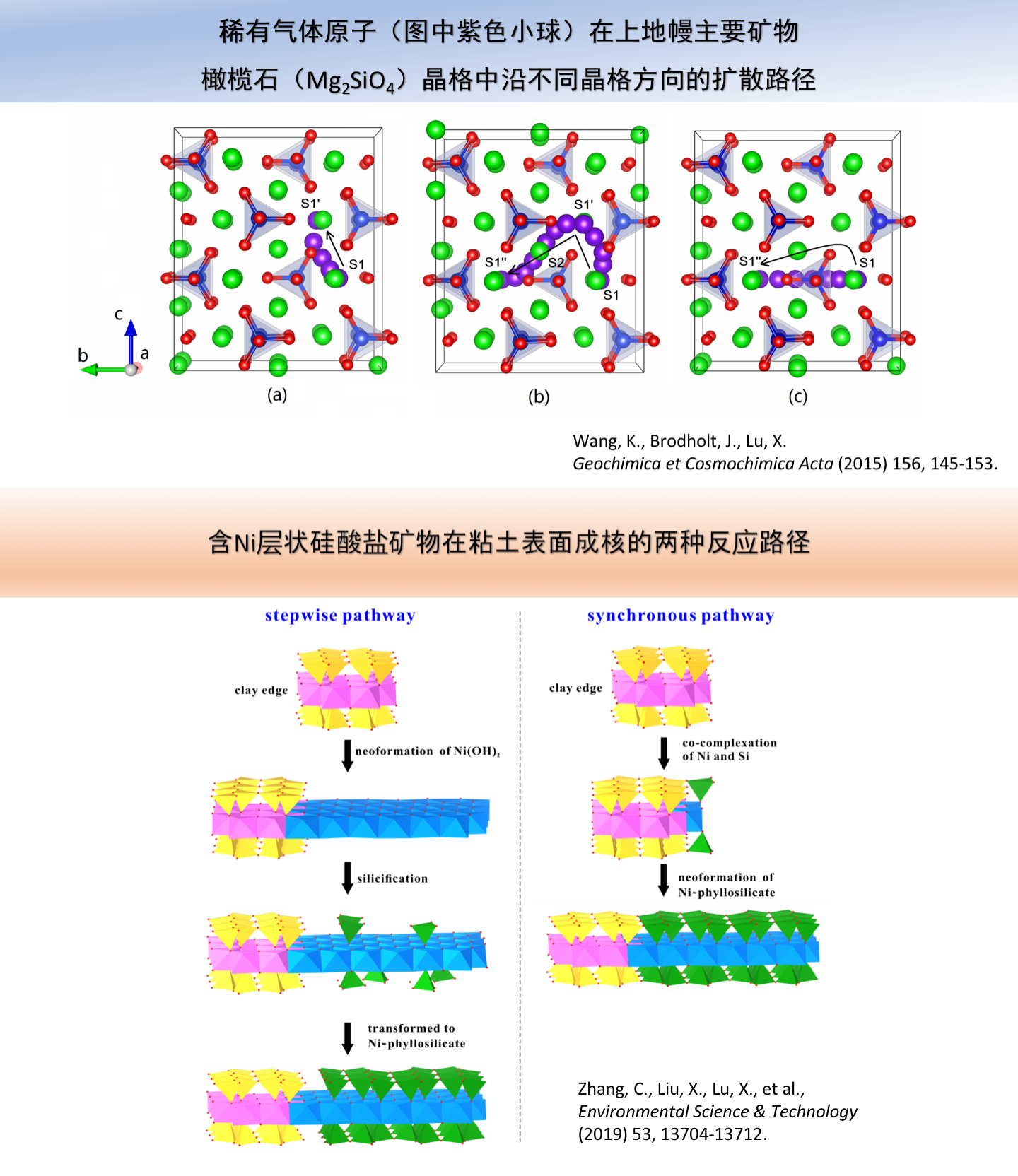 矿物演化动力学:矿物是固体地球元素的集散地和转运站,是元素演化和地球动力过程的信息载体。我们基于矿物晶体化学精细表征,着重研究成岩成矿过程、地球表面过程、环境演变过程中矿物的形成和变化,通过多种原位微区分析、同步辐射支持技术和地球化学动力学实验模拟,揭示矿物组成元素释放、迁移、富集和分异的微观动力学过程,建立成岩成矿、生物矿物交互和环境质量变化的模式和模型,为认识元素地球化学循环及其资源环境效应提供理论支持。