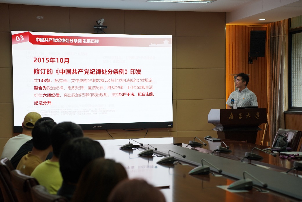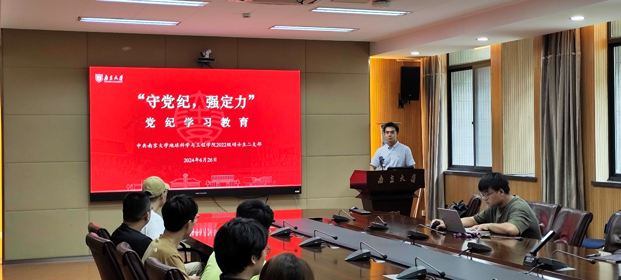 为进一步夯实党风廉政建设的基础,做到学纪、知纪、明纪、守纪,6月26日,地球科学与工程学院2022级硕士生第二党支部在朱共山楼a205举办了以“守党纪,强定力”为主题的党纪学习教育主题党日活动。