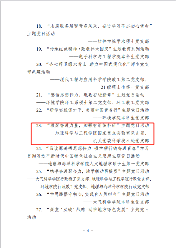 国家重点实验室党支部将继续紧紧围绕国家战略,面向科学前沿、学科未来发展和平台人才队伍建设,持续加强党建引领,秉承创新思维,提高党建工作质量,提升支部的服务能力,全面落实实验室重组目标要求,立足中国大地,服务国家需求,攀登科研高峰,为“第一个南大”的建设而踔厉奋进!