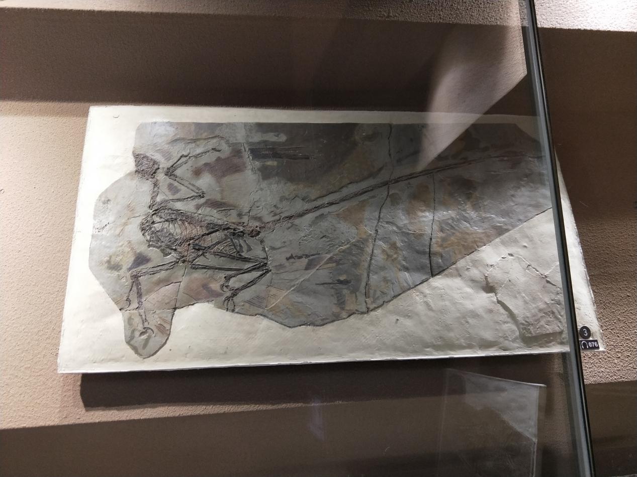 在博物馆中,我最喜欢的标本是那件顾氏小盗龙正模标本的复制品。我喜欢这件标本的原因单纯是因为它是小盗龙的化石标本,而我非常喜欢小盗龙。这件标本和原版正品的色差较大,原版主体颜色较深,而这件较浅。但是在其他细节上与原版十分接近,可以说是高度还原了。