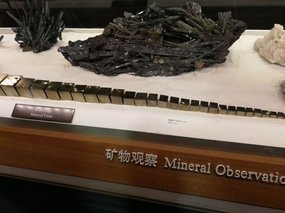 我最喜欢的展厅是地下二层的“大地探珍”展厅。展厅里主要陈列的是各种矿物、岩石和土壤。这里陈列的矿物都是非常美丽的,晶体非常大,形状非常规则,和课本上的矿物图片一样。陈列的岩石也是多种多样,但我在普地的实验课上基本上也都见到过了。管内还陈列了多种土壤,以前我也只是听说过一些而已,这次也是长了不少见识。