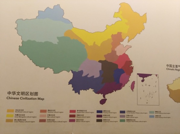我最喜欢“人地之源”展厅。这一展厅大致介绍了人类农业文明的起源(以几种主要作物为引)和中国由地理环境影响而发展出来的几种文化。这一展厅使我对农业的起源和发展有了一些了解,也使我开始反思文明与自然环境的关系。中国的文化区,显然与地形气候等自然因素有关。