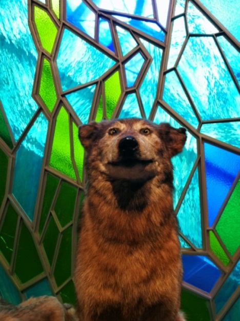 我最喜欢这具标本的原因是因为其神态表情莫名透露出一种憨态可掬,展现了人们普遍认知中狼凶狠本性以外的一种非常识性的可爱。甚至有点像“二哈”,极具有亲和力。