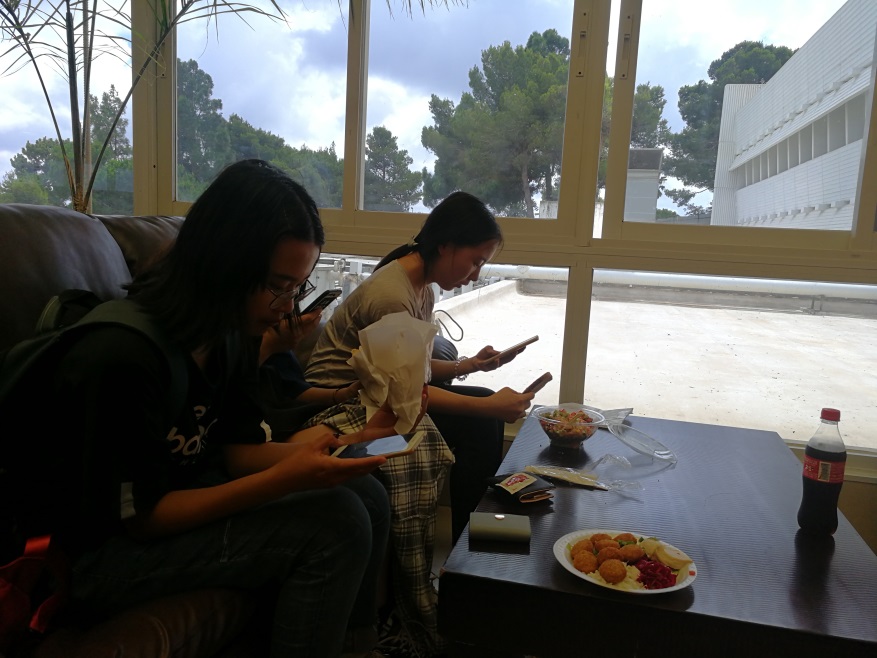 中午参观完学校,老师同学们一起在一家小餐馆用过午餐便回到寝室稍作休息。晚上的 mingle dorm club海法大学所有暑期项目的留学生一起像个孩子一样做游戏,冷餐会。来自世界各地,包括加拿大、美国、德国、俄罗斯、乌干达、中国、刚果等等的人们围坐一圈,讲述自己的故事,在游戏中增进了解。夜色已深,回路晚风清凉透爽,到宿舍洗一个热水澡,一天的困意又涌了上来,倒头便沉沉睡去(除了本文作者还在顽强地写稿子)。第二天早上,暑期课程便算是正式开始!