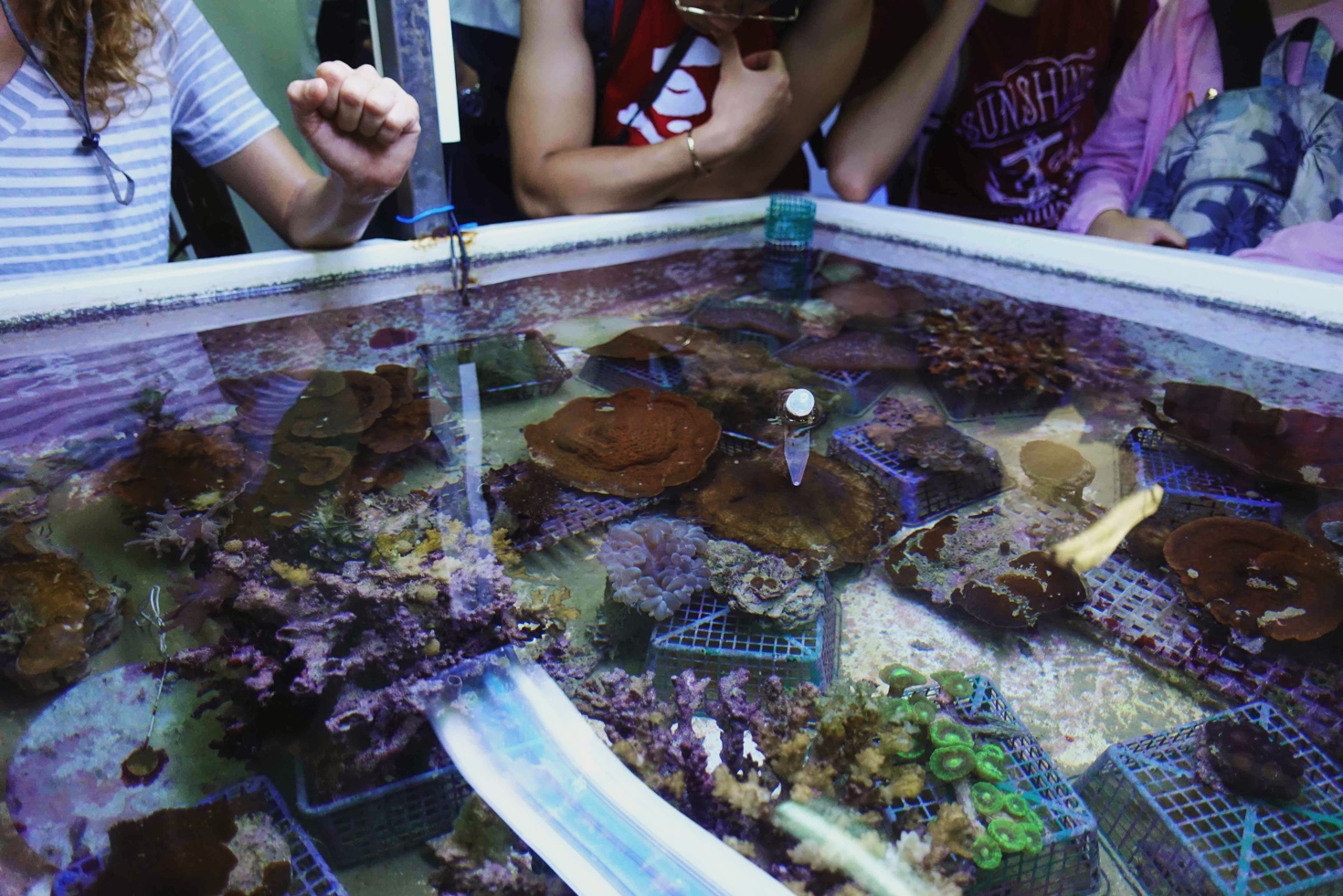 之后我们来到海洋生物实验室参观,研究人员先为我们展示各种生物标本,介绍在地中海所发现的不同生物的来源、特征和习性。并带我们参观珊瑚养殖圃,介绍珊瑚养殖技术。随后我们来到海岸边的藻类实验室,在这里有不同尺寸的可以自动调节温度、ph恒定的培养池,研究人员介绍到目前在进行的有关藻类的实验主要是希望知道藻类生长对气候变化的响应,还列举出几种标志性的入侵物种。参观内容与理论课内容呼应互补,使我们理论课上所学的内容得到了巩固和拓展。