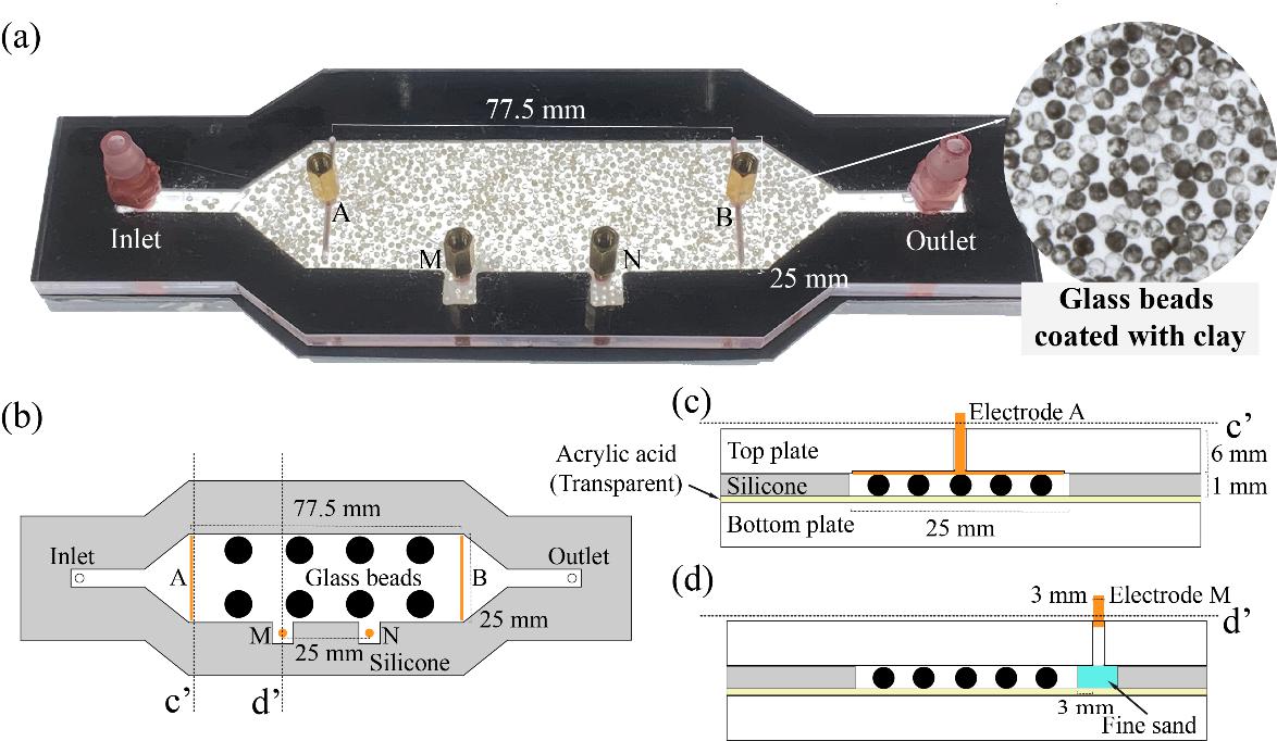 图1. 用于复电导率监测与孔隙水实时成像的微模型实验装置