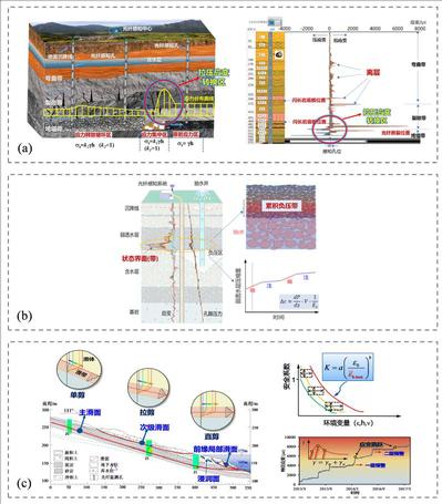 论文重点介绍了相关成果应用于采场覆岩物质界面感知、地面沉降状态界面感知和库区边坡灾变运动界面感知的三个典型案例(图4), 并展示了新的科学发现和认识。 论文的最后指出了岩土体灾变光纤感知技术今后的发展方向和前沿研究课题。